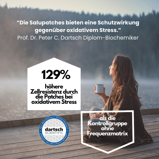 Unsere SALU Patches mit Frequenzmatrix bieten eine einzigartige Schutzwirkung gegenüber oxidativem Stress, wie wissenschaftliche Untersuchungen von der Dartsch Scientific GmbH bestätigen.